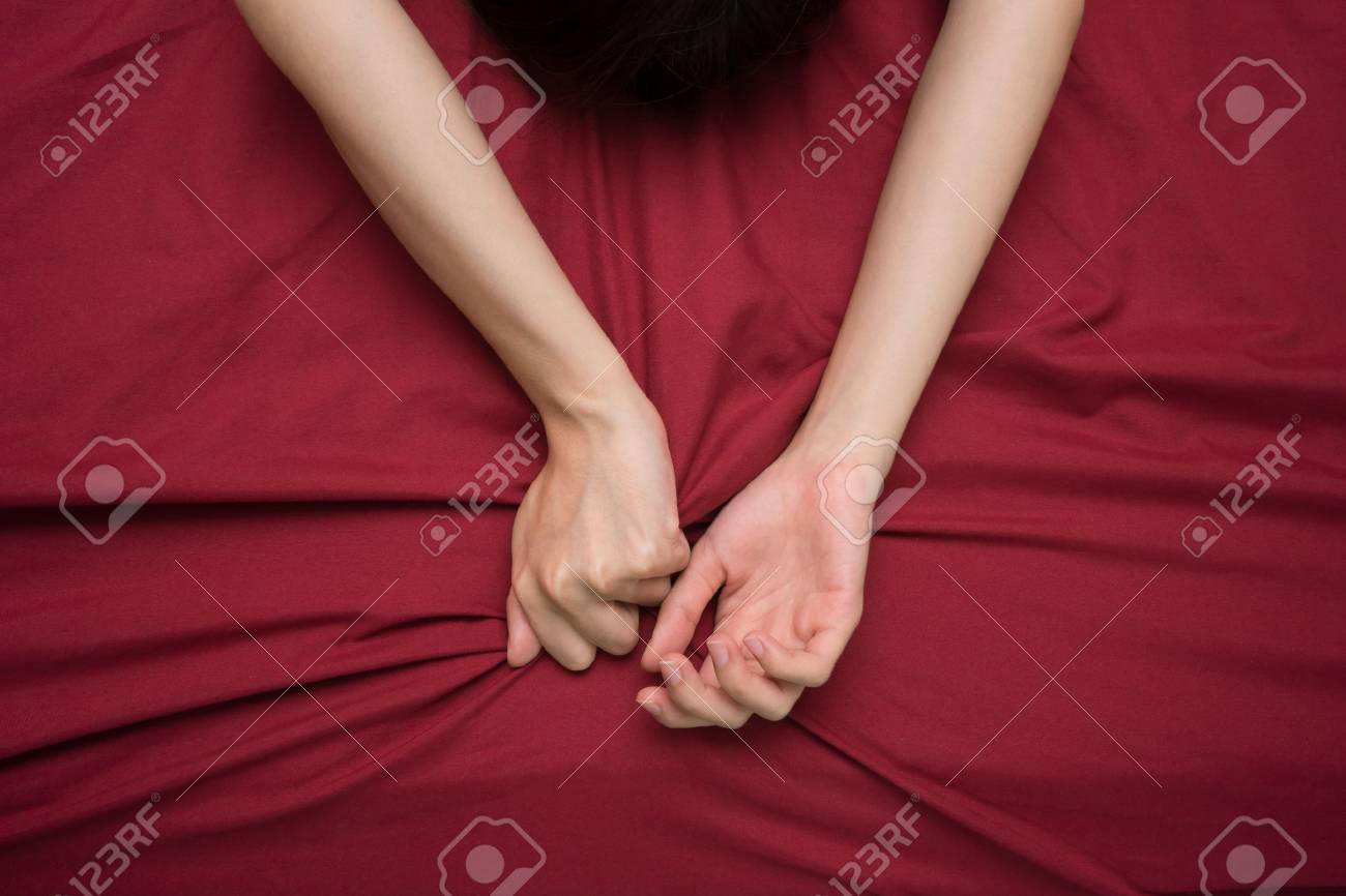 シーツをつかむ手の女性 の写真素材 画像素材 Image